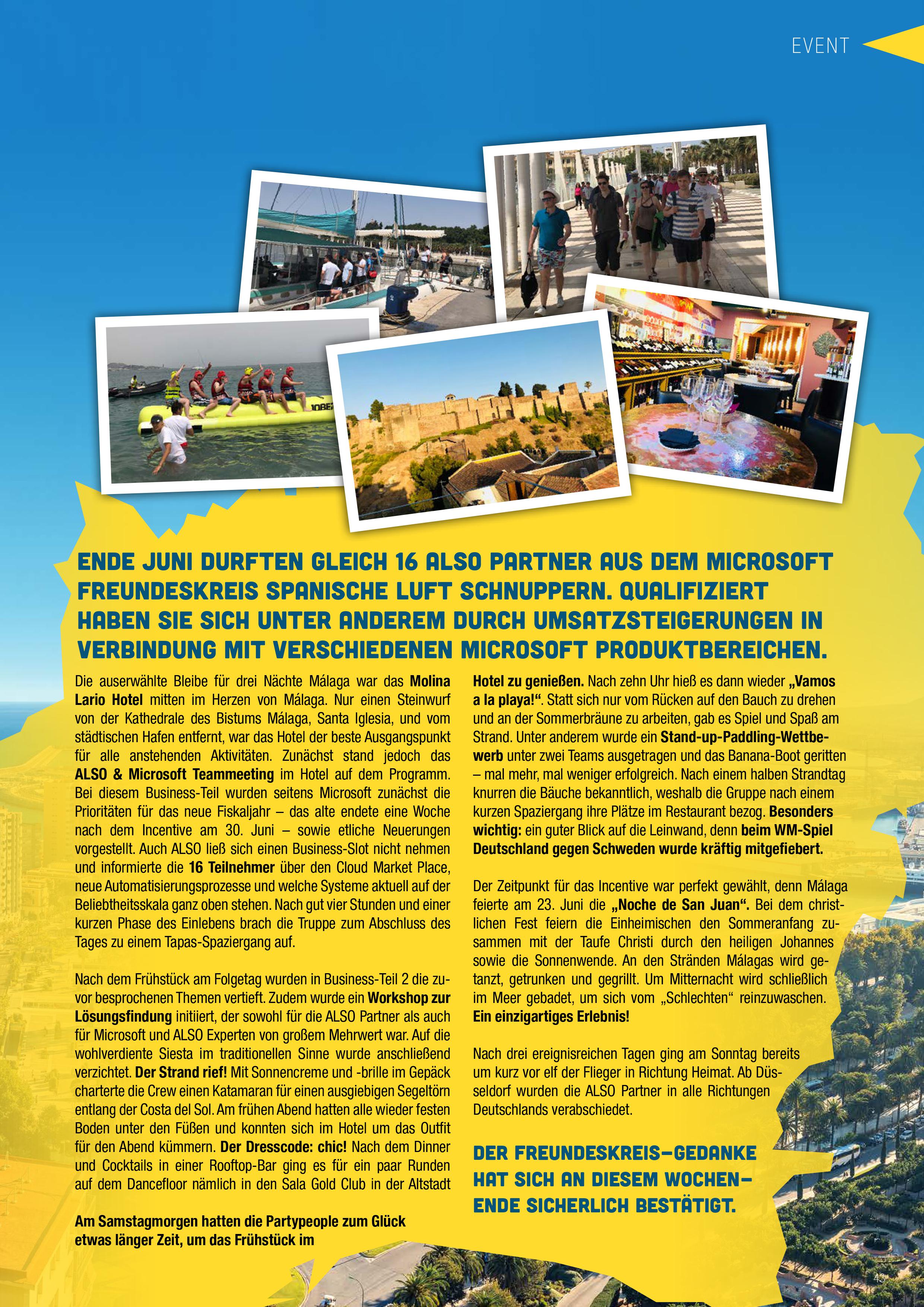 Ende Juni durften gleich 16 ALSO Partner aus dem Microsoft Freundeskreis spanische Luft schnuppern. Qualifiziert haben sie sich unter anderem durch Umsatzsteigerungen in Verbindung mit verschiedenen Microsoft Produktbereichen.