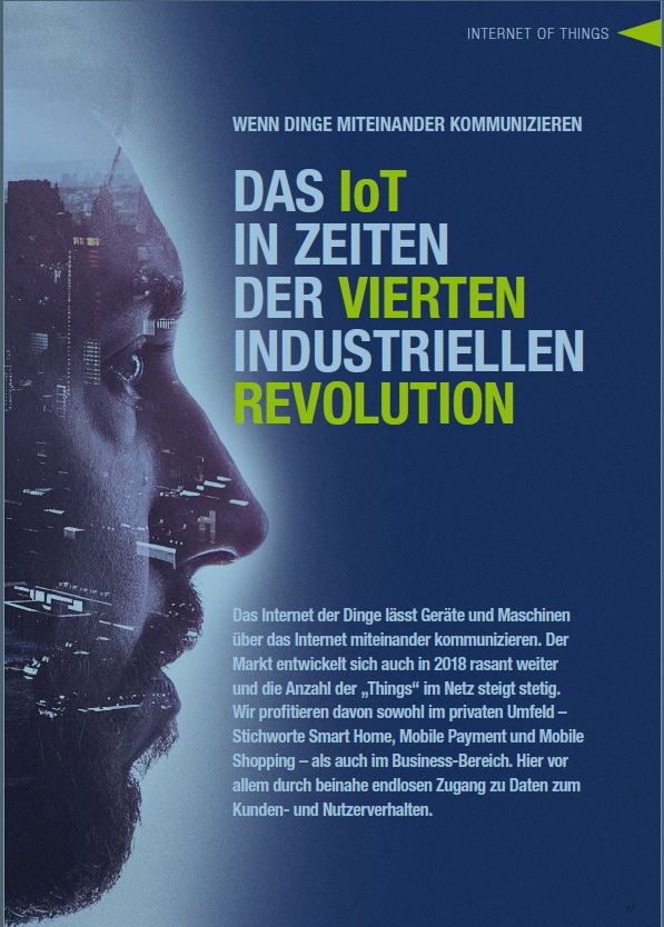 Kurz und prägnant: Das Internet der Dinge lässt Geräte und Maschinen über das Internet miteinander kommunizieren. Der Markt entwickelt sich auch in 2018 rasant weiter und die Anzahl der „Things“ im Netz steigt stetig. Wir profitieren davon sowohl im privaten Umfeld – Stichworte Smart Home, Mobile Payment und Mobile Shopping – als auch im Business-Bereich. Hier vor allem durch beinahe endlosen Zugang zu Daten zum Kunden- und Nutzerverhalten.