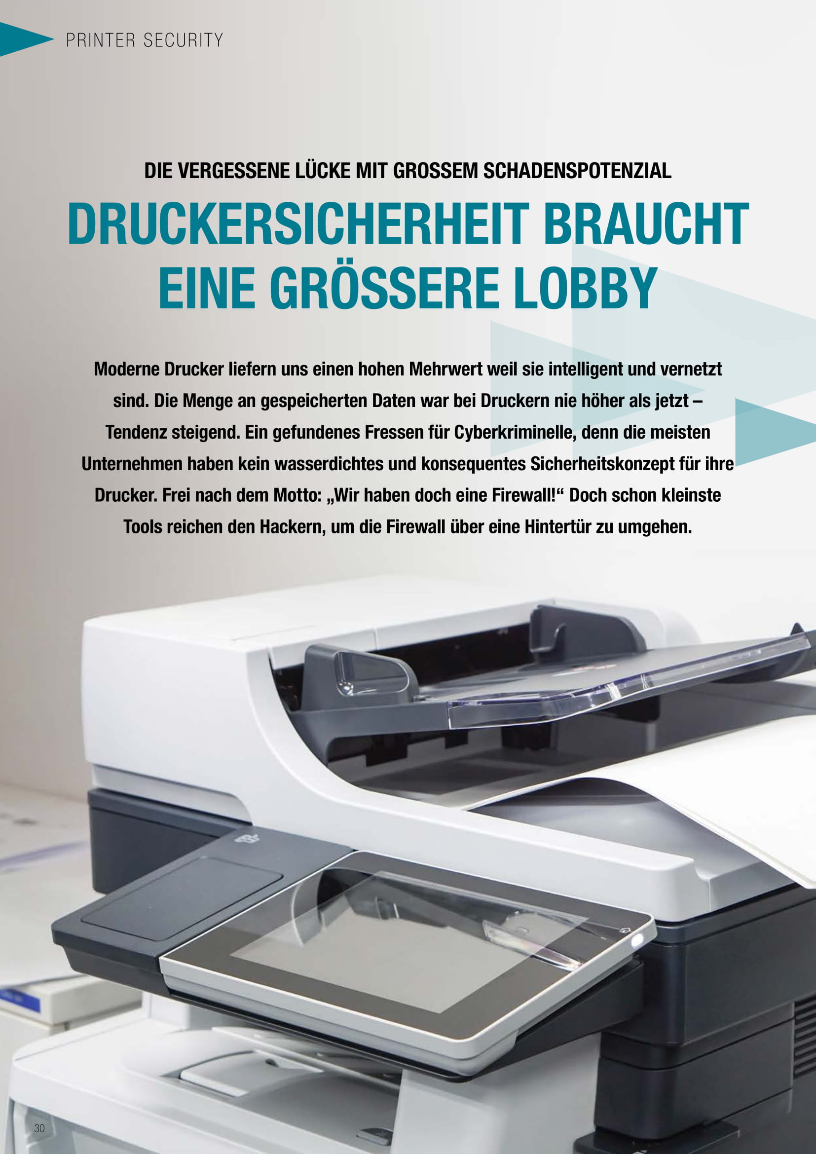 - Ein gefundenes Fressen für Cyberkriminelle, denn die meisten Unternehmen haben kein wasserdichtes und konsequentes Sicherheitskonzept für ihre Drucker. Frei nach dem Motto: „Wir haben doch eine Firewall!“ Doch schon kleinste Tools reichen den Hackern, um die Firewall über eine Hintertür zu umgehen.