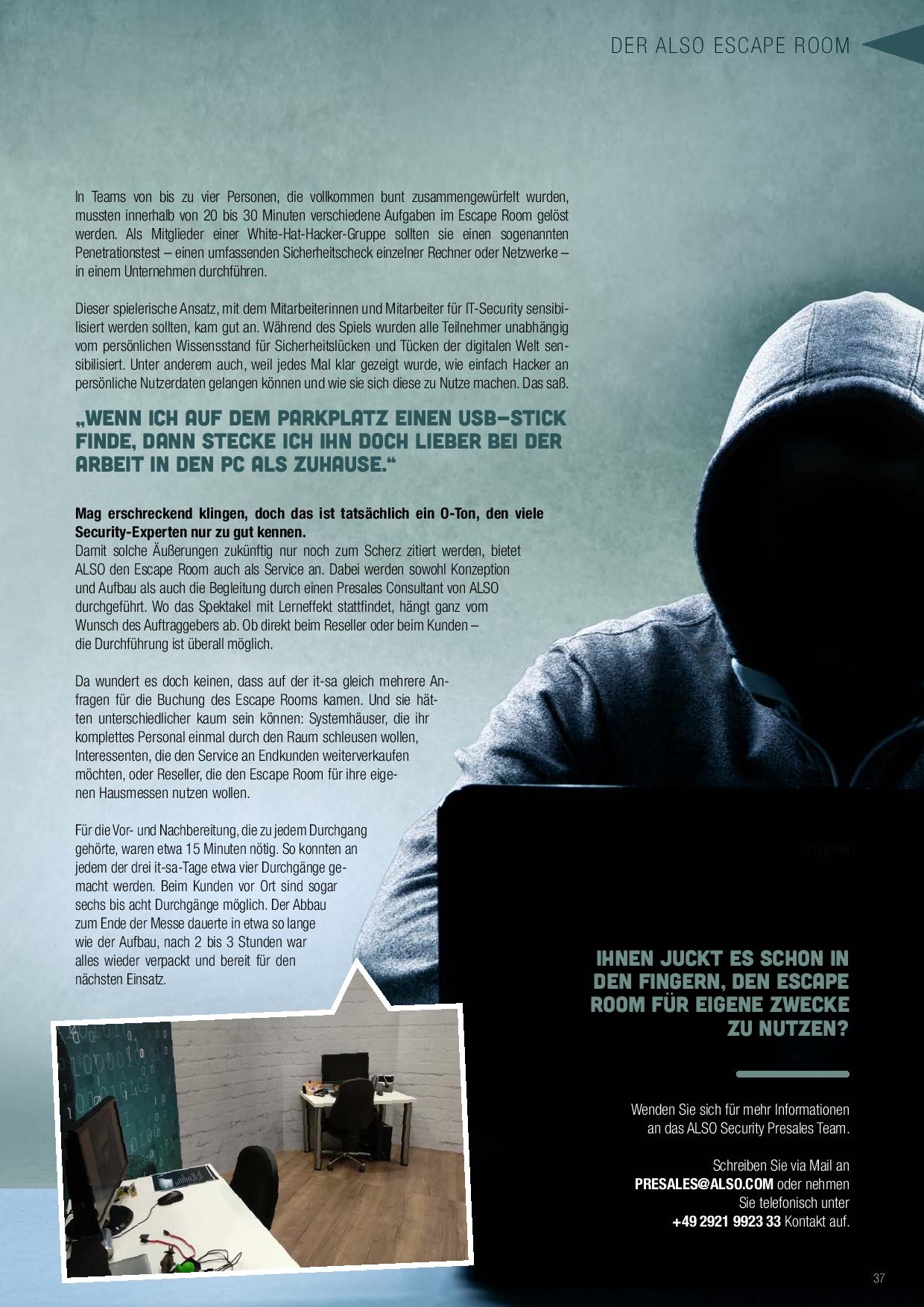 Ihnen juckt es schon in den Fingern, den Escape Room für eigene Zwecke zu nutzen? Wenden Sie sich für mehr Informationen an das ALSO Security Presales Team. Schreiben Sie via Mail an oder nehmen die telefonisch unter 02921-99 23 33 Kontakt auf.