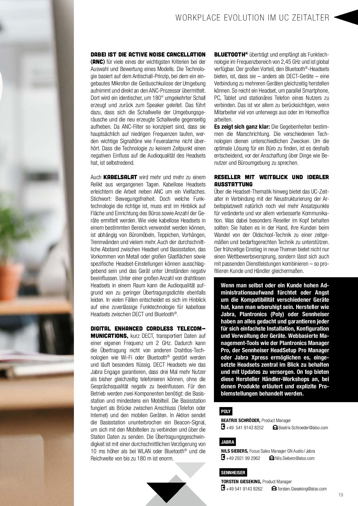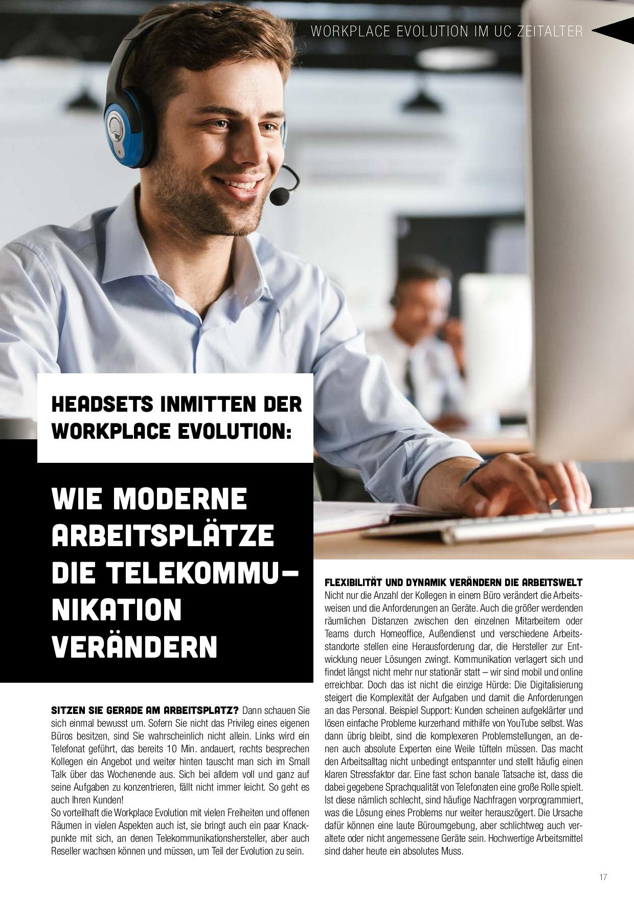 Über die Headset-Thematik hinweg bietet das UC-Zeitalter in Verbindung mit der Neustrukturierung der Arbeitsplatzwelt natürlich noch viel mehr Ansatzpunkte für veränderte und vor allem verbesserte Kommunikation. Was dabei besonders Reseller im Kopf behalten sollten: Sie haben es in der Hand, ihre Kunden beim Wandel von der Oldschool-Technik zu einer zeitgemäßen und bedarfsgerechten Technik zu unterstützen. Der frühzeitige Einstieg in neue Themen bietet nicht nur Wettbewerbsvorsprung, sondern lässt sich auch mit passenden Dienstleistungen kombinieren – so profitieren Kunde und Händler gleichermaßen.
