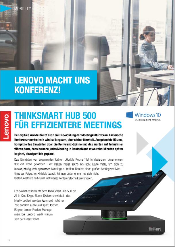 Lenovo hat deshalb mit dem ThinkSmart Hub 500 ein All-in-One Skype Room System entwickelt, das intuitiv bedient werden kann und nicht nur Zeit, sondern auch Geld spart. Torsten Rügner, Leader Product Management bei Lenovo weiß, warum sich der Einsatz lohnt.