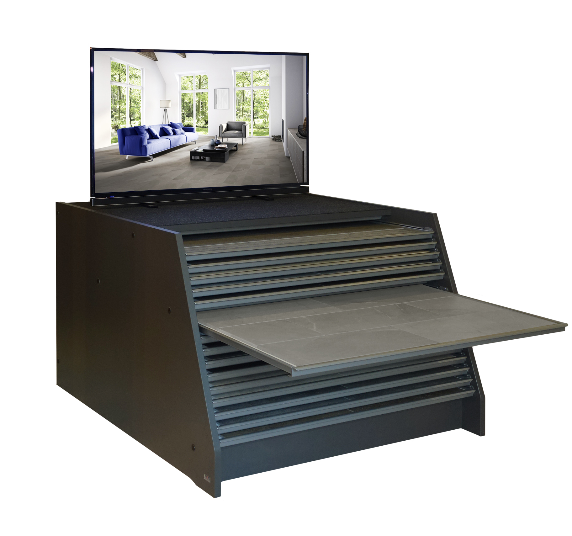 „Digitalisierung für jeden“, getreu ihrem Motto präsentieren die Branchenpioniere von HauffDigital mit dem digitalen DIY-Möbel CENTAURI eine unkonventionelle und günstige Lösung. Viele Handwerker mit kleinen Verkaufsräumen wird’s freuen. Der interaktive Bodenschrank mit 15 Auszügen für Boden- und Parkett-Muster wird in Einzelteilen inklusive der Sensorik als Paket geliefert. Einfach aufbauen, an einen Monitor und Strom anschließen – schon vergrößert sich die Ausstellung um ein Vielfaches und modernisiert sich visuell, technisch und kundenorientiert.
